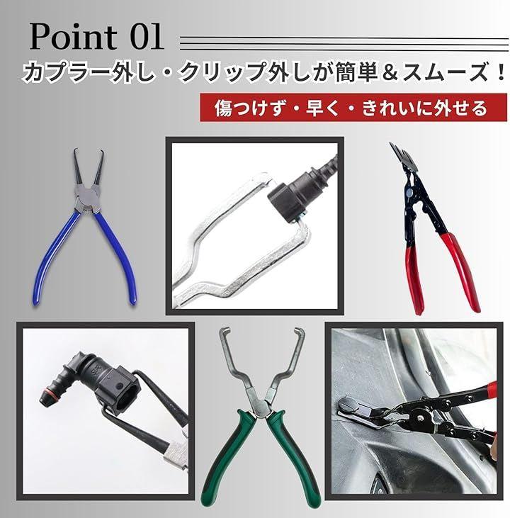 エンジン周りや燃料ライン、冷却水ホースなど、車両整備に欠かせないカプラー外し工具です。