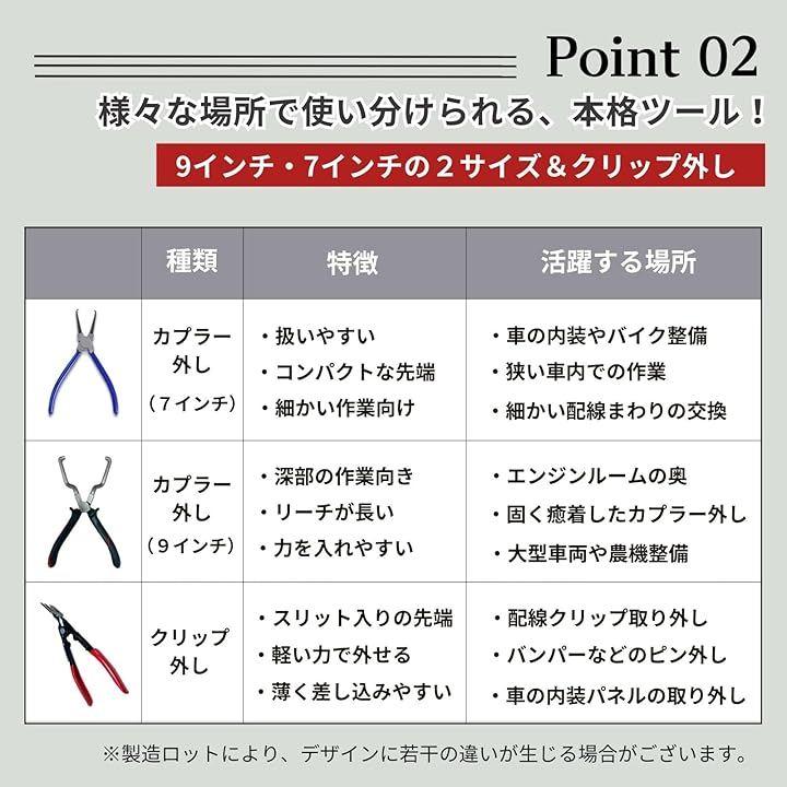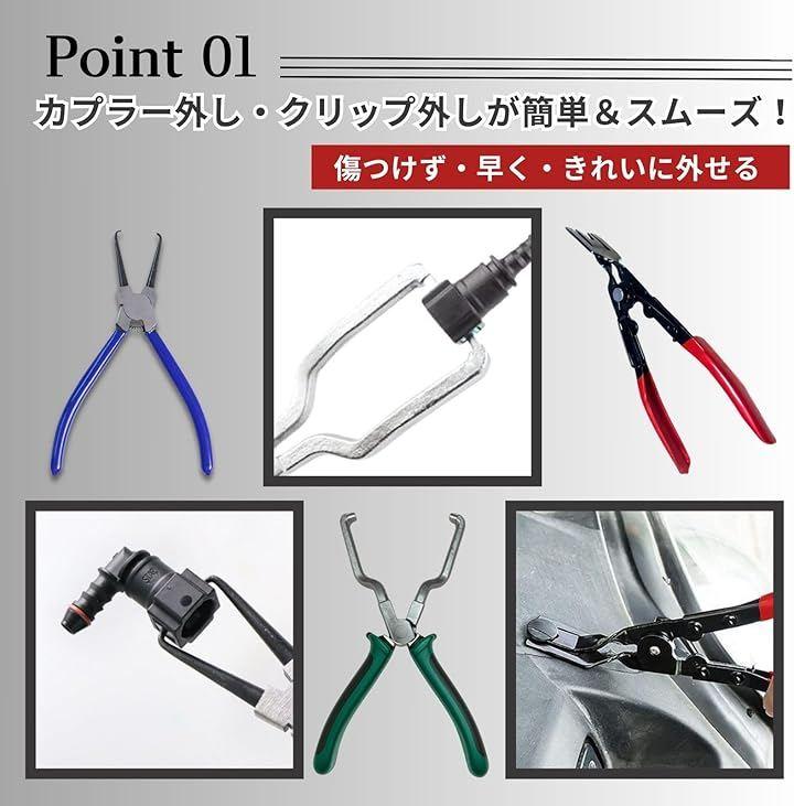 「クリッププライヤーで内装作業も効率化」 ドアパネルやトリム、ピン、リベットの取り外しに便利なクリップリムーバーもセットに。