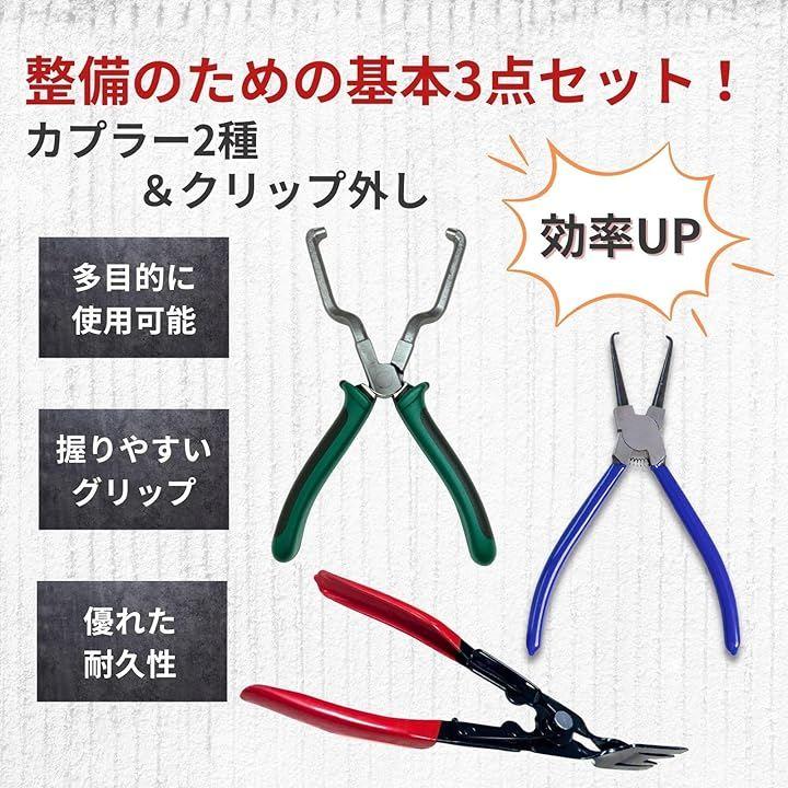 「プロ仕様の3点セットで作業効率アップ」 カプラー外し2種とクリップ外しが1つになった、整備に必要な基本ツールを揃えた3点セット。