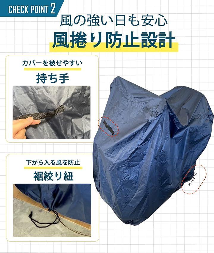 「風でとばない」裾を絞る紐が付いているので、風がカバーの下からはいり巻き上がってしまうことを防ぐ仕様となっています。
