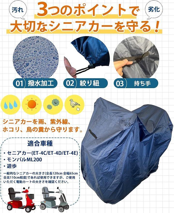 「使いやすさ」シニアカー・電動カートカバーの重要ポイントである「軽量」、「耐久性」、「使いやすさ」を追求しました。長くお使いいただける商品となっておりますが、長期間使用すると防水性が落ちてしまいます。