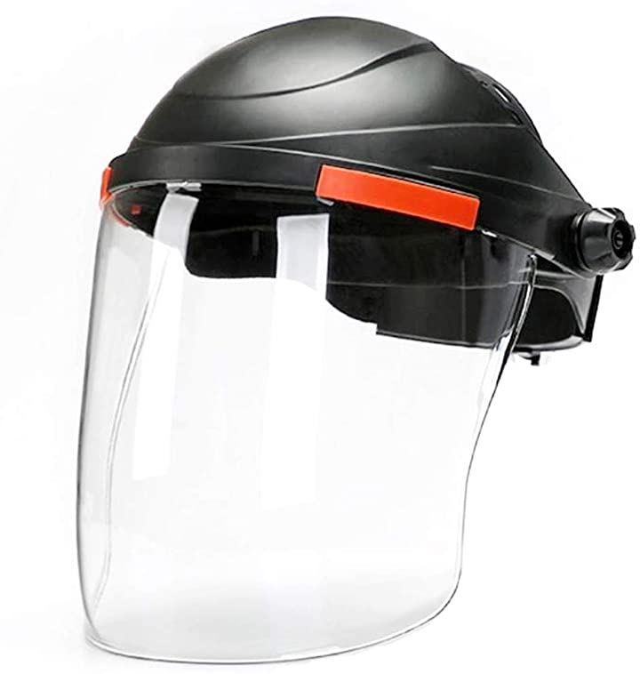 作業中に出る草・小石・破片・くずなどの飛来物から目だけでなく顔全体を保護できるフェイスシールドです。