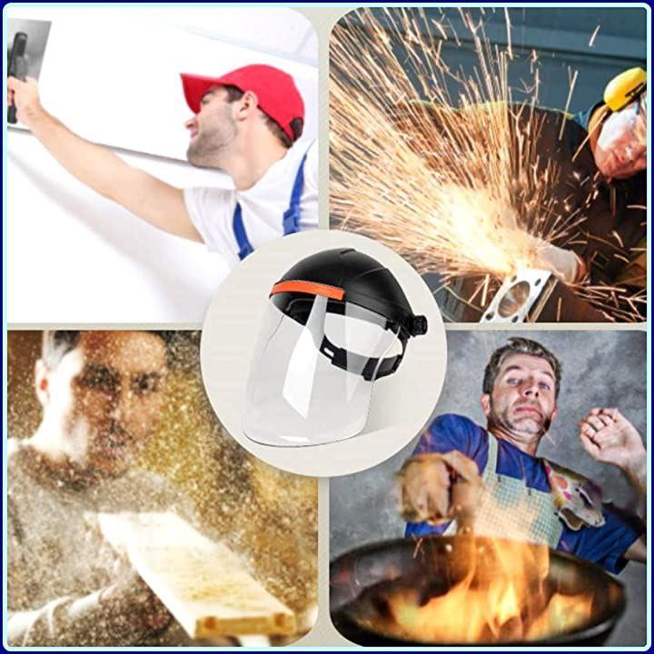 ・作業中に出る草・小石・破片・くずなどの飛来物から目だけでなく顔全体を保護できるフェイスシールドです。