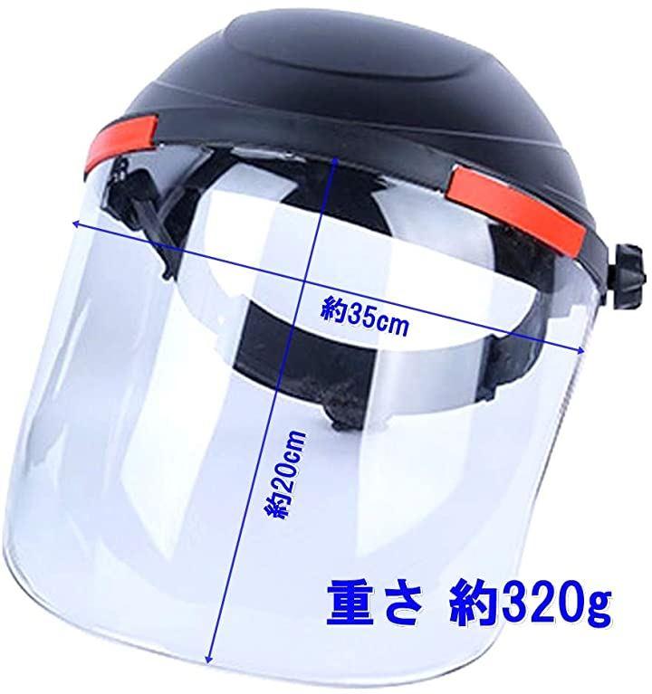 ・「重さ」約320g 「シールドの大きさ」長さ:約20cm 幅(最大):約35cm 「頭囲」約50cm~62cm