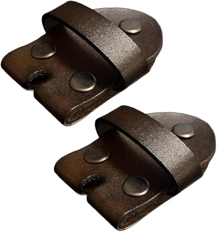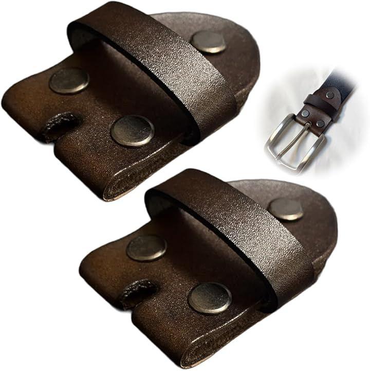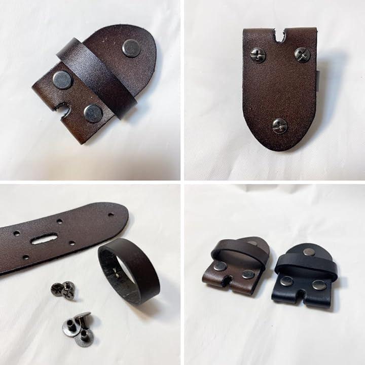 ・素材 牛革(二層牛革) ネジ(合金) ・風合い 薄地タイプ ・サイズ サイズ長さ13.4cmx横幅3.9cmx厚み2.0cm ・カラー 黒ブラック 茶ブラウン ネジ色「黒ブラック」 ・セット数 2組セット ・付属品(1組分) ベルトベロ ベルトループ ベルト用ネジ凹凸3点