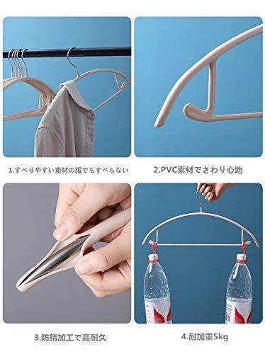 【最新版】:滑り止めのゴムコーティングで主にコーティングされています。力学の原理により、半円のデザインが肩の突起を取り除き、服の形をキープします。ぶら下がったリボンがついていない服に適します。【高品質材料】:丈夫耐用-ステンレス鋼製で、滑り止めPVCコーティングをしています。頑丈な材料、頑丈な加工で作られており、防錆効果もあります。【完璧な耐荷重】:各ハンガーの耐荷重が約8KGで、冬はコートやセーター、ダウンジャケットを吊るすのに適しています。【抜群な設計】:このハンガーは両端にフックがあり、スカートやベストなどのストラップを固定することができます。【コンパクトup】:木製ハンガーよりもはるかに狭いスペースを持っていますが、服をしっかりキープするのに十分な強度があり、プラスチックのハンガーよりも強く持ちます。