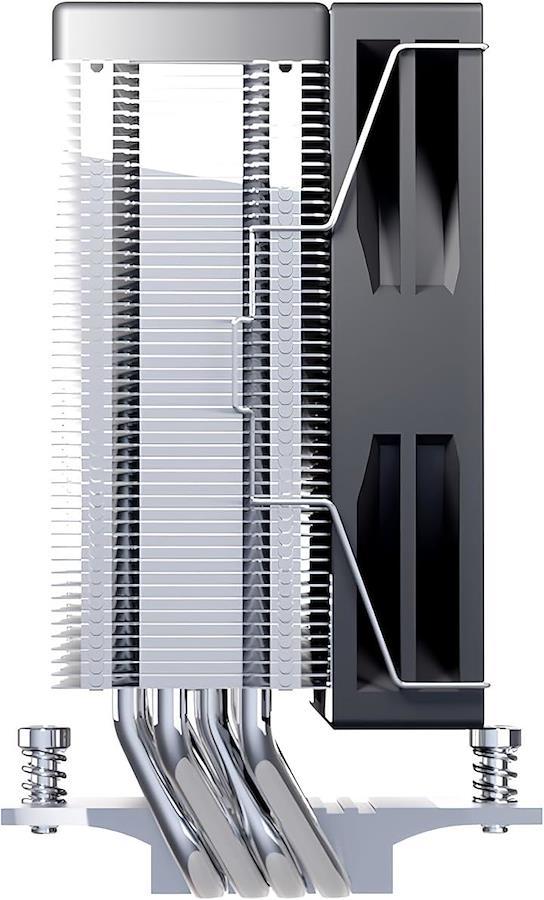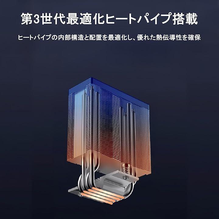 サイドフロー設計を採用し、4本のφ6mmヒートパイプと120mmファンによる高効率な熱拡散性能を実現しています。
