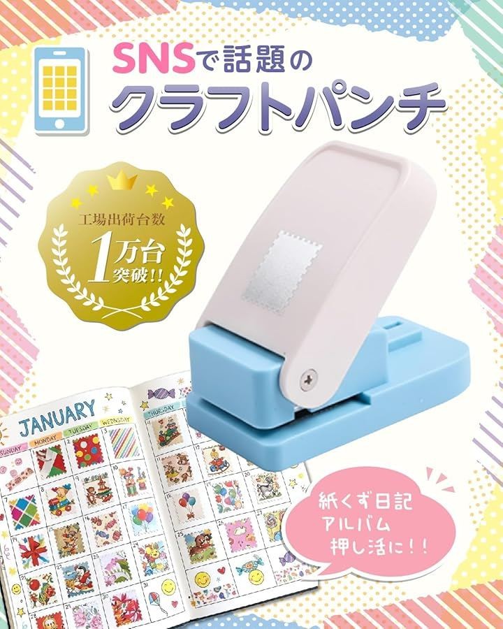 「紙くず日記・スクラップに人気の切手パンチ」 クラフトパンチ 切手タイプは、紙くず日記やスクラップブック、アルバム作り、カードデコ、推し活ノートにも最適。