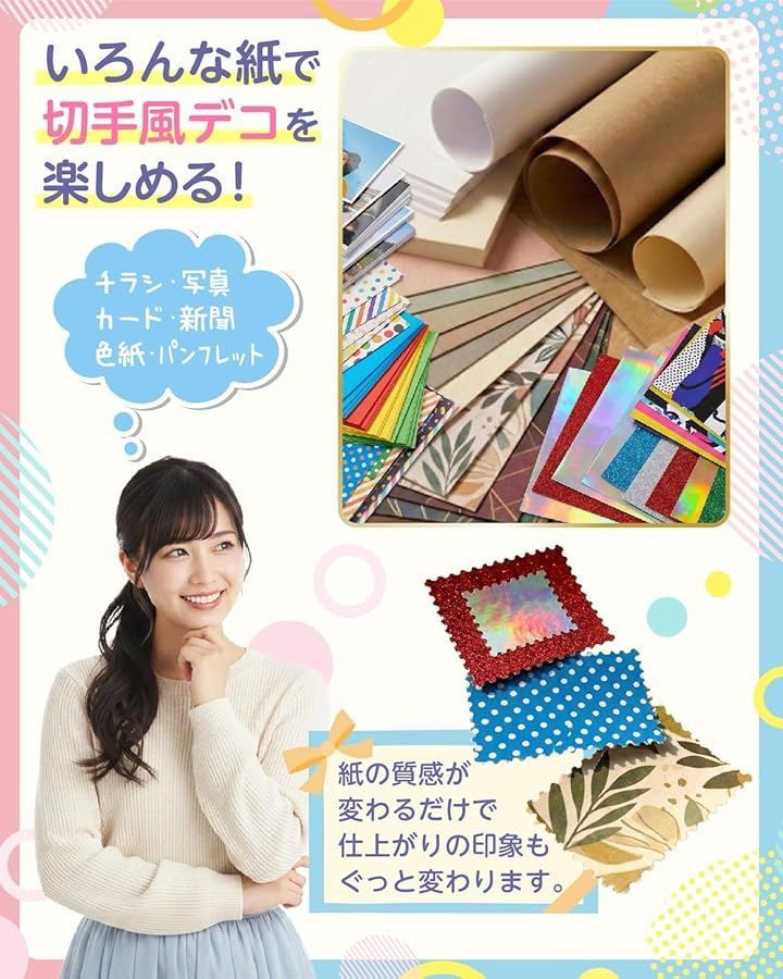 切手パンチならではのギザギザ縁がアクセントになり、いつもの紙が一気に作品映えするオリジナルパーツに仕上がります。