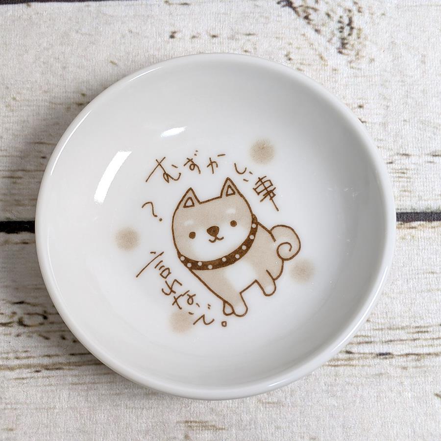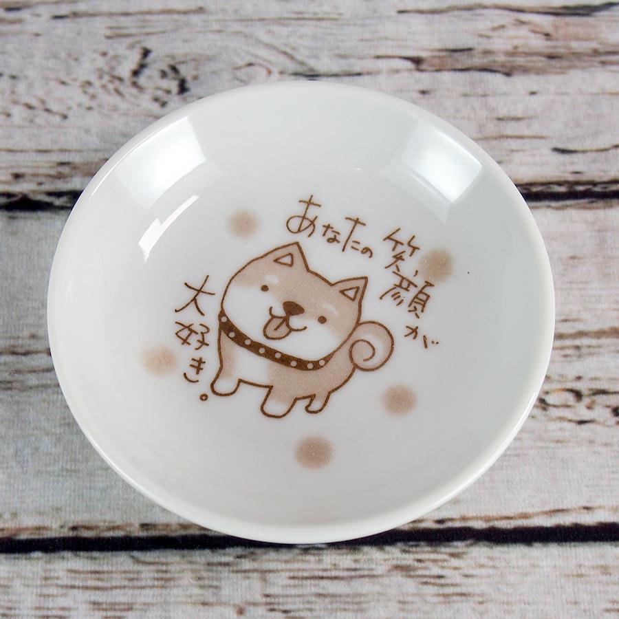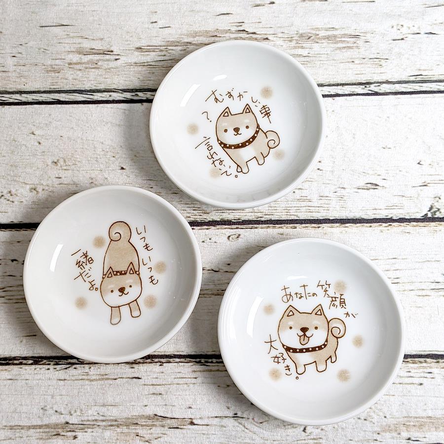 愛らしい柴犬のイラストとメッセージが入った小皿のセットです。