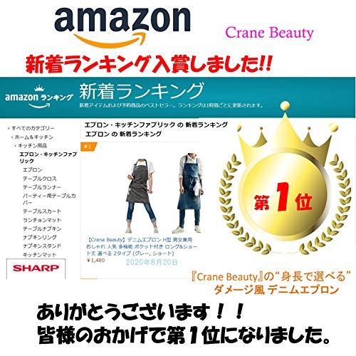 ?【身に付けたくなるおしゃれエプロン】“普段めったに エプロンを身に付けることがない” という 皆様の為に ”Crane Beauty”がお勧めする、カジュアル でおしゃれな デニム ダメージ エプロン。大きな ポケット も付いていて 機能性 はもちろん、個性(自分らしさ)を表現でき、スリムにも見える カフェ風 エプロンです。 日常にエプロンを取り入れてみるのはいかがでしょう。 男女兼用?【幅広い用途】キッチン、ガーデニング、ワーキングなど普段使いにも、カフェ 保育園、学校、雑貨屋での作業の時など、機能性抜群 な上におしゃれなカフェ デニム エプロン。男女兼用 なので、身長高い方~小柄な方、老若男女と着ていただける、様々な用途で 使える逸品。また、ギフトとしても喜んでいただけること間違いなし???【洗濯時の注意事項】最初の洗濯は色移りの可能性がありますので、他のものと分けて洗って下さい。ドライアイロンもスチームアイロン直当て可能。漂白剤不可。乾燥機は使用せずに自然乾燥させて下さい。?【背丈により合わせる事も】好みに合わせてお選び下さい。 ■ M(ショート丈):丈 約70㎝(胸当て上部から裾まで)、裾周り約78cm、首紐(片方)約65㎝ <首掛けタイプのみ取扱い> ■ L (ロング丈):丈約87㎝(胸当て上部から裾まで)、裾周り約85cm、紐2本付き(1本)約132cm <背中にX型のみ採用> ■ 素材:綿100% ■ 仕様:ポケット付?【満足度100%保証】エプロンご購入後、30日間満足保証。着用後・洗濯後でも返品OK!返送料金も無料ですので安心してご購入いただけます。また、商品の不具合だけでなく、デザインが予想と異なったなどの理由でも返品可能です。