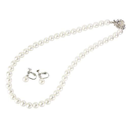 【さまざまなシーンで活躍!】 冠婚葬祭 、 卒業 卒業式 や 入園 入学式 の フォーマル シーンや 結婚式 、 パーティー 発表会 などの華やかな装いに大人気の パールセット です。【使いやすいサイズとお買い得セット!】フォーマル な装いに合わせやすい 8mm パール珠を採用。ネックレスの長さは 42cm と胸元を彩るプリンセスサイズです。さらに同じパール珠を使用したイヤリングもセットに!【高級貝パール】貝核に天然貝を使用したパール珠は、本真珠と比べても勝るとも劣らない仕上がりになっています。 本真珠と比較しても汗や汚れに強く、耐久性に優れているため、コストパフォーマンスに優れたパールアクセサリーです。【高品質の日本製!】素材、金具、組み付けともに国内の職人が手作業で生産しております。国産の留め金具はおしゃれなローズモチーフで高級感を演出。永くご愛用いただけるアイテムです。【セット内容】ネックレス・イヤリング【サイズ】パールネックレス:42cm パールイヤリング:ネジバネ式金具 パール珠サイズ8mm【素材】高級貝パール(人工真珠) ネックレス留め具・イヤリング金具:真鍮(ロジウムメッキ) 保存しやすいベッチンケースに入れてお届けします。【お買い上げ日から半年間の品質保証付】