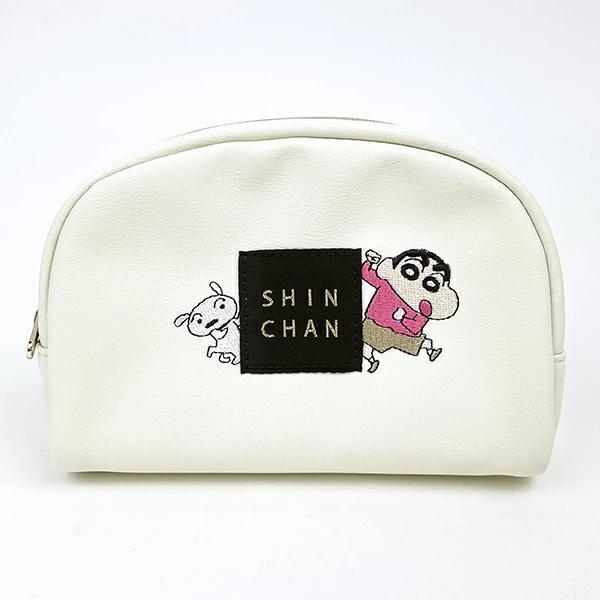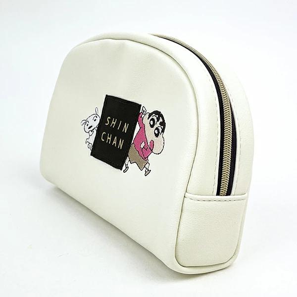 クレヨンしんちゃんのひょっこり刺?のラウンドポーチです♪マチがあるのでコスメや小物入れにもしっかり入ります◎