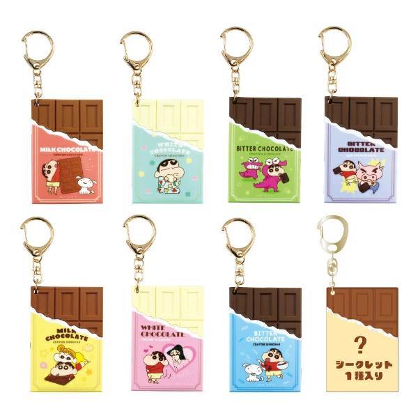 クレヨンしんちゃんのチョコレートキーホルダーのBOXセットです。全8種。本物みたいで美味しそう♪板チョコ風のラバーキーホルダーです☆しんちゃん好きなお友達と分け合っても◎可愛いイラストにも注目です♪