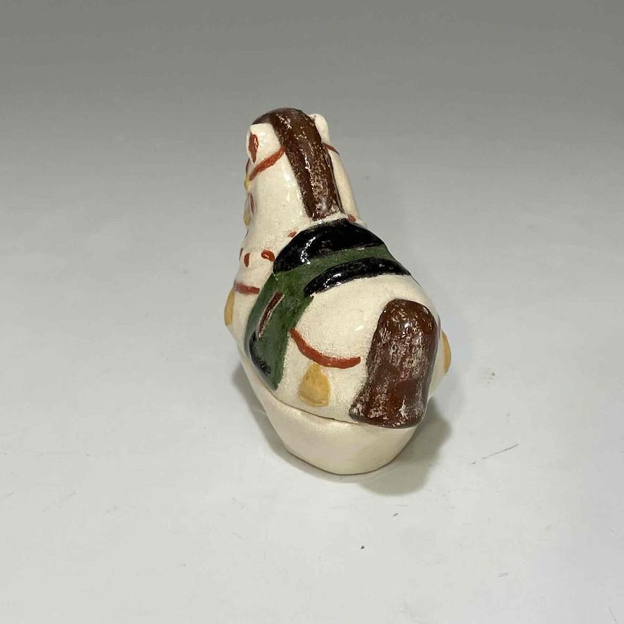 日本では古来、馬は「神さまの乗り物(神馬)」とされてきました。なかでも白馬は祭礼に奉納されるなど、特別な神聖さを帯びた存在として尊ばれてきました。その馬をかたどった土鈴人形をモチーフに、災厄を祓い幸運を招く願いを込めた香合となっております。■約20.5×10.5×7.0cm