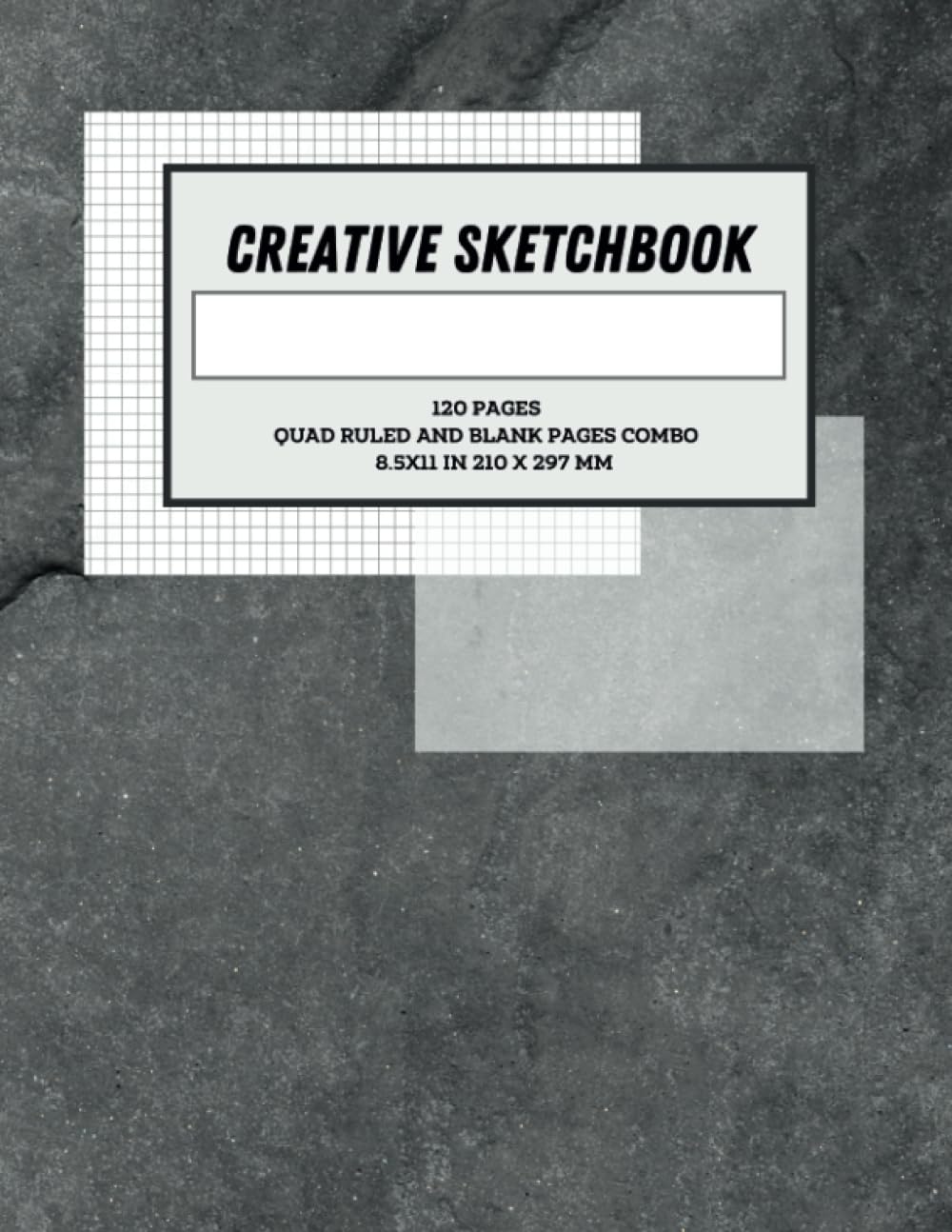 Creative STONE Sketchbook: 120 PAGES Quad Ruled and Blank Pages Combo 8.5x11 in 210 x 297 mm (Graph Paper Notebooks)