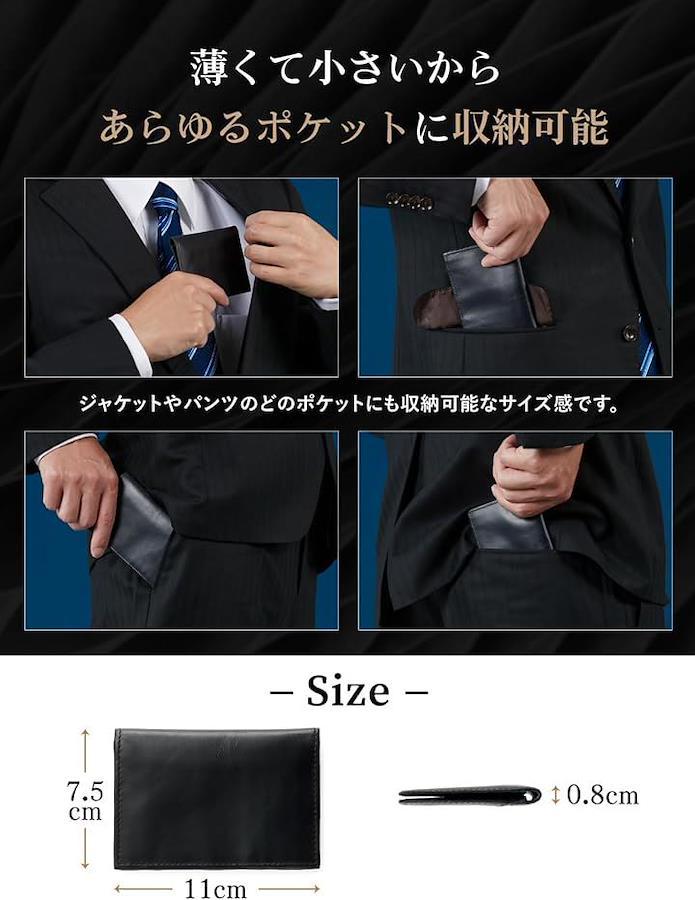「薄型でコンパクトなのに収納力たっぷり」薄型の二つ折りのカードケースというと「収納力がないのでは?」と思う方もいるかもしれませんが、そんなことはありません。