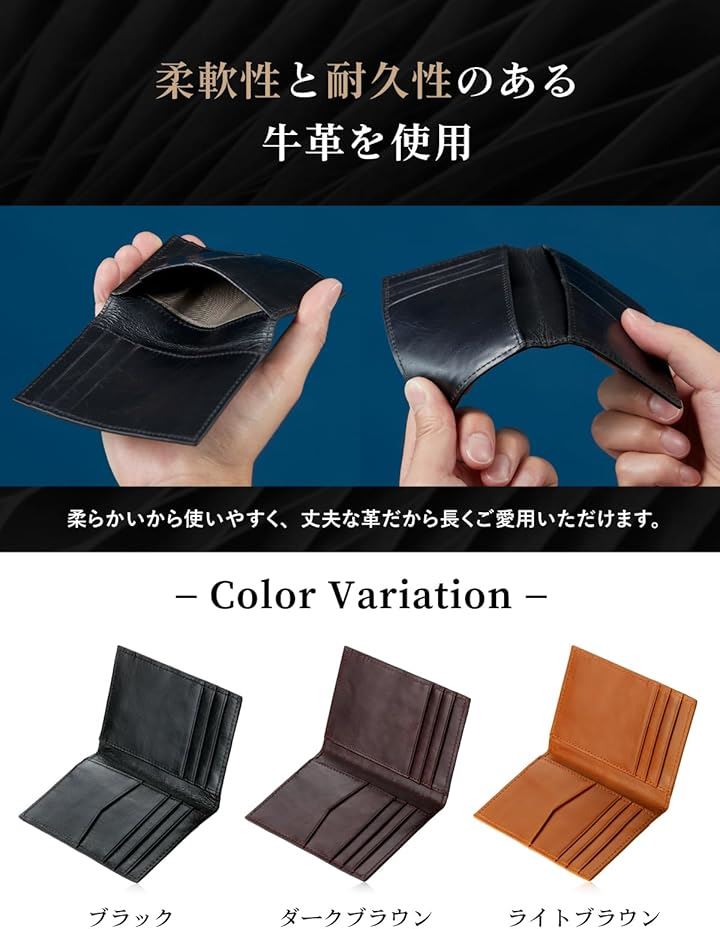 「厚み0.8cmの超薄型/本革二つ折りカードケース」できる限りスリムに、そしてコンパクトに製作されたメンズ二つ折りカード入れ。
