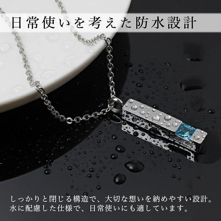 「素材&サイズ」素材:ステンレス/ペンダントサイズ:高さ38mm・幅6mm/チェーン:長さ40cm~45cm(アジャスター付き)/チェーン幅:0.2cm/付属品:ジュエリーボックス・納骨用スプーン・ピンセット・骨砕き紙・漏斗・キーホルダーリング