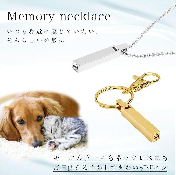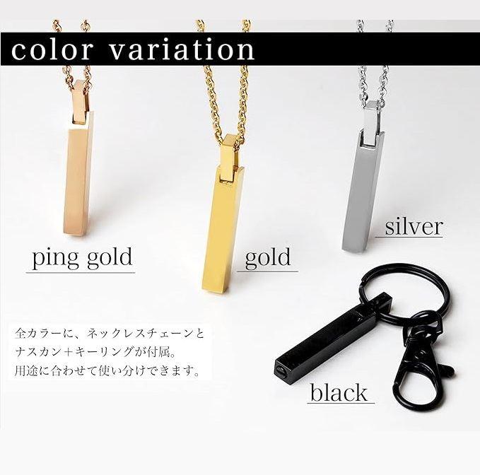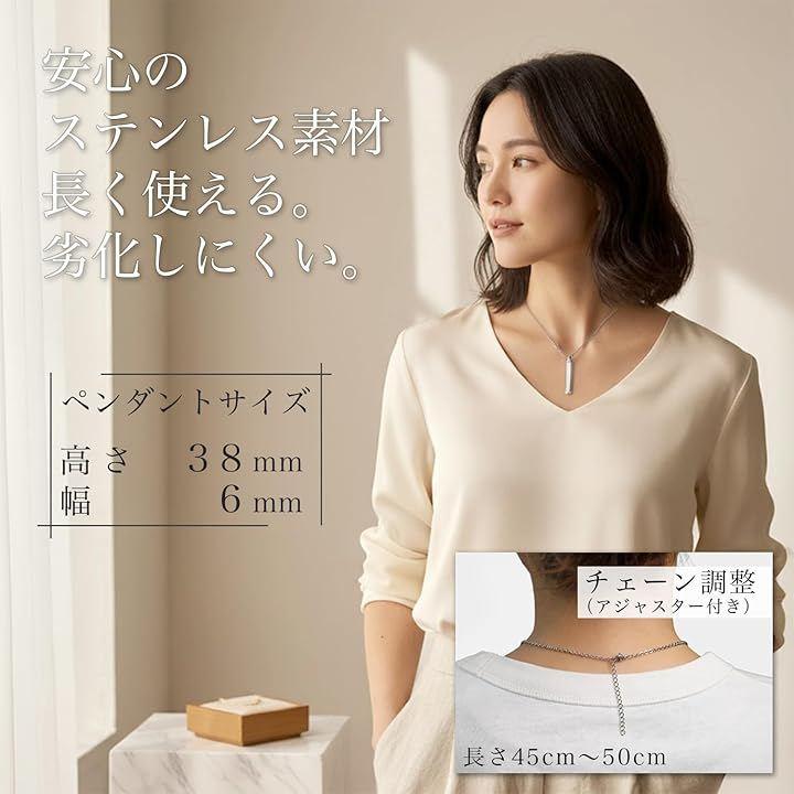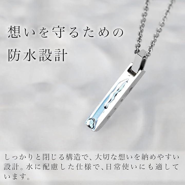 「素材&サイズ」素材:ステンレス/ペンダントサイズ:高さ38mm・幅6mm/チェーン:長さ40cm~45cm(アジャスター付き)/チェーン幅:0.2cm/付属品:ジュエリーボックス・納骨用スプーン・ピンセット・骨砕き紙・漏斗・キーホルダーリング