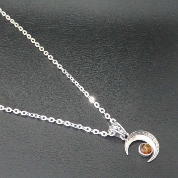 Crescent Moon Necklace Amber Silver 925 Crescent Moon Moon Crescent Moon Luna Arabesque Arabesque Pattern Arabesque Necklace Pendant Natural Stone Birthstone Men's Silver Accessory Christmas Birthday Present Unisex Handmade Grand Galleria Grand Galleria