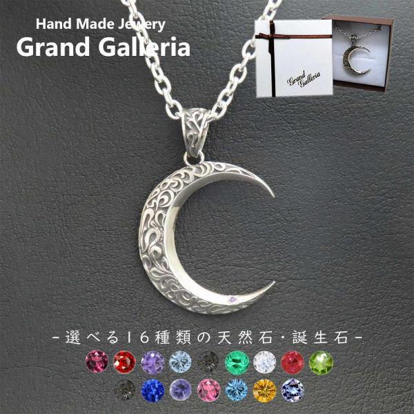 Crescent Moon Necklace Silver 925 Crescent Moon Crescent Moon Luna Arabesque Arabesque Necklace Pendant Choice of Natural Stones Birthstone Men Male Boyfriend Silver Accessories Christmas Birthday Present Handmade Grand Galleria