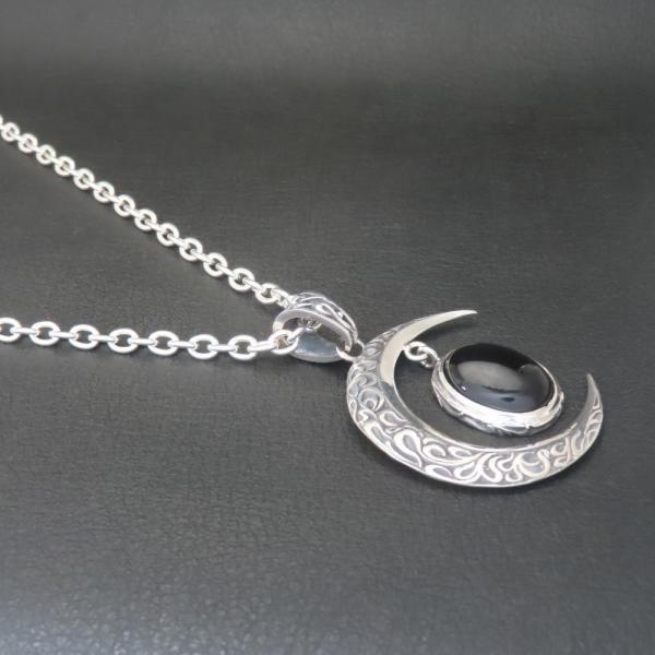 【モチーフ】 三日月、月、ムーン、唐草模様、唐草、アラベスク ◆モチーフ意味 月は「優しさ」の象徴で知性と心の落ち着きを与えてくれます。 また、満ち欠けの周期で姿を変えるため成長の象徴とされています。 唐草模様は、唐草模様は葉や茎、植物が伸びたり絡んだりした植物の模様でツタは生命力が強く、途切れる事なく伸びていく事から「繁栄・長寿」の意味があります。 生命力、永遠に力強く伸びつづけるという、縁起の良いイメージとされてきました。 オニキスは、持ち主の意志の力を強くさせ、正しい判断力を与え、他人の悪意を跳ね返して身を守る「自己防衛の石」と呼ばれます。 ネガティブな感情がとれず、周りの思惑が気になる人には、落ち着きを与え、絶望や妄想から解き放ってくれるといわれております。 意志の弱い人や、優柔不断な人は、悪意や悪い誘惑から身を守り、自分の意志を強くもてるようにサポートしてくれるでしょう。 また、つらい過去や忘れられない思い出を引きずっている人には、思いを断ち切り、新しい出会いのチャンスを呼び込むといわれています。 ◆商品名 三日月オニキスネックレス(PDT-390) ◆素材 シルバー925 スターリングシルバー ◆ペンダント寸法 縦44mm×横33mm ◆ストーン 縦×横=14×10mm オニキス ◆チェーン長さ 35~60cmの中からお好みの長さをお選び下さい。 4.0mmシルバー925小豆チェーン ◆付属品 ジュエリーBOX、ショップ袋、品質保証書 *プレゼント梱包出来ます ◆実店舗 JR帯広駅より徒歩5分の場所にある2012年オープンのフラッグシップショップ。 ジュエリー工房を併設し、常駐する職人自らと打ち合わせも可能なため、修理や加工、お客様のご希望に沿ったジュエリーもお作りすることが可能です。 ◆オススメ使用シーン ・様々な贈り物に プレゼント 贈り物 誕生日 誕プレ 誕生日プレゼント バースデー バースデイ 御祝 御祝い お祝い 母の日 父の日 クリスマス クリスマスプレゼント Xmas 春夏秋冬 成人 成人式 卒業 卒業式 進学 就職 入学 金婚式 銀婚式 出産 結婚 開店 開業 定年退職 退職 移動 転勤 バレンタイン バレンタインデー バレンタインデイホワイトデー ホワイトデイ ごほうび ご褒美 御褒美 ・想いを込めて ありがとう 感謝 ごめんなさい 許して ごめんね よろしく おめでとう おめでとうございます 仲直り ・こんな方に 自分 彼女 彼氏 大切な人 大切な方 お父さん お父様 父親 親父 父 お母さん お母様 母親 母 兄弟 姉妹 子供 おばあちゃん 祖母 おじいちゃん 祖父 奥さん 妻 旦那 旦那さん 先生 生徒 職場 先輩 後輩 上司 部下 同僚 友達 友人