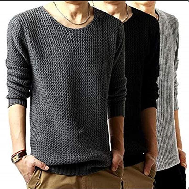 Crew Neck Knit Sweater Long Sleeve Tops Men's Black