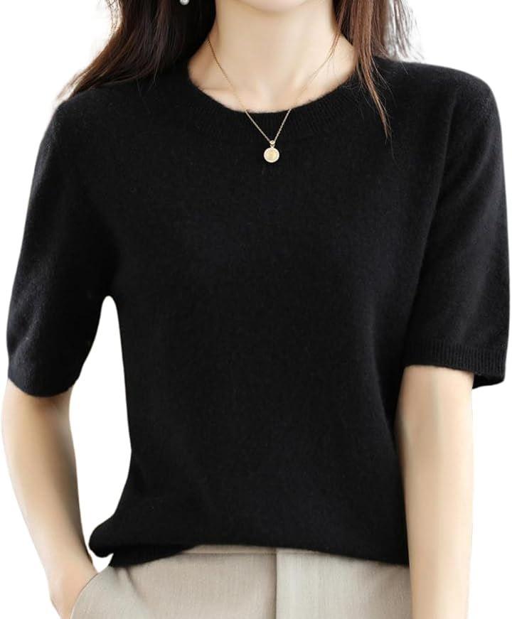 クルーネックの半袖に、襟と袖がリブ仕様になって、フェミニンな大人の女性を演出。