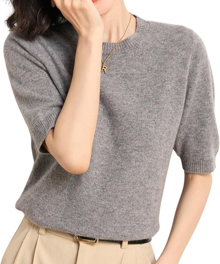 クルーネックの半袖に、襟と袖がリブ仕様になって、フェミニンな大人の女性を演出。