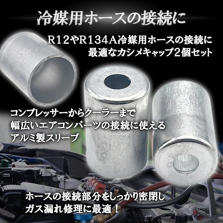 R12やR134a冷媒用ホースの接続に最適なカシメキャップ2個セットになります。
