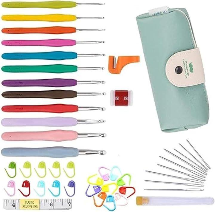 「編み物が楽しくなる45点セット」このカラフルなかぎ針セットは、編み物の楽しさを引き出します。