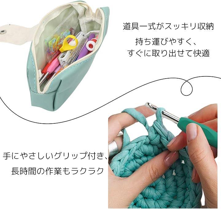 「便利な収納ケース付き」すべてのツールがコンパクトなケースに収まっているため、持ち運びが簡単で、どこでも編み物を楽しむことができます。