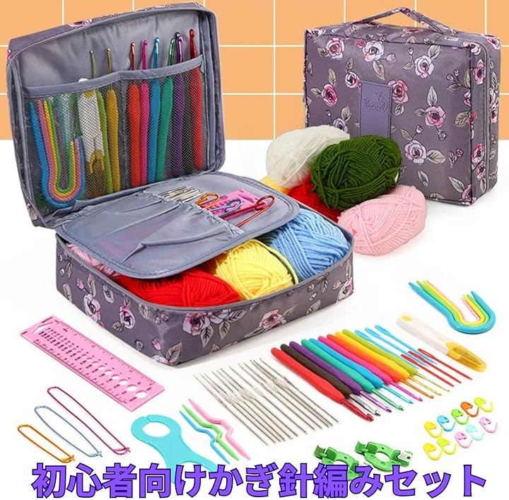 「かぎ針編みセット」かぎ針編みキットには、編み物を始めるために必要なすべての材料と道具が含まれています。
