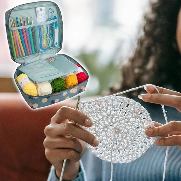 「収納やすい」ポータブルキャリーバッグが付属しているかぎ針編みツールキットは、すべてのかぎ針編みツールをきちんと整理できて紛失しない。