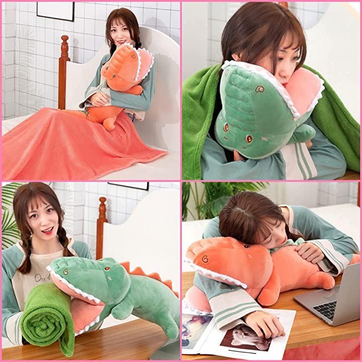 ワニブランケットぬいぐるみひざ掛け収納抱き枕癒し系ふわふわやわらかクッション
