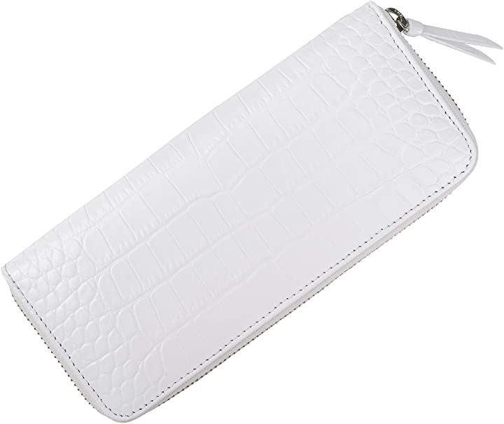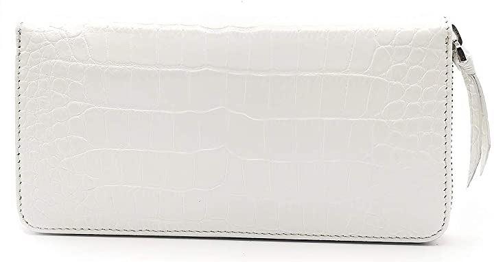 クロコダイル型押しの牛革長財布。