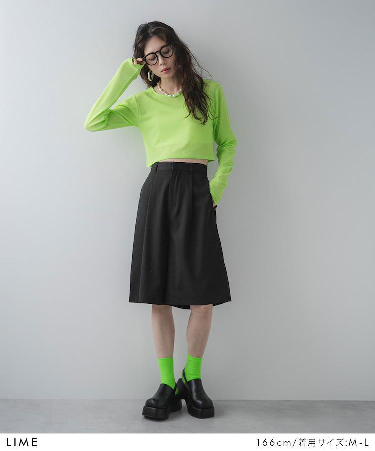 ハイウエストのボトムと合わせれば、程よい肌見せと脚長効果も抜群。シアートップスのロングタイプとのレイヤードは最強のバランスでオシャレ見え間違いなしです。