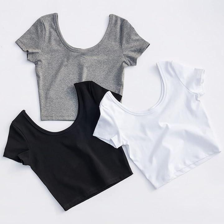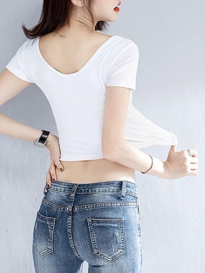 クロップド丈のトップスはハイウエストのボトムとコーデを組んでも決まります。