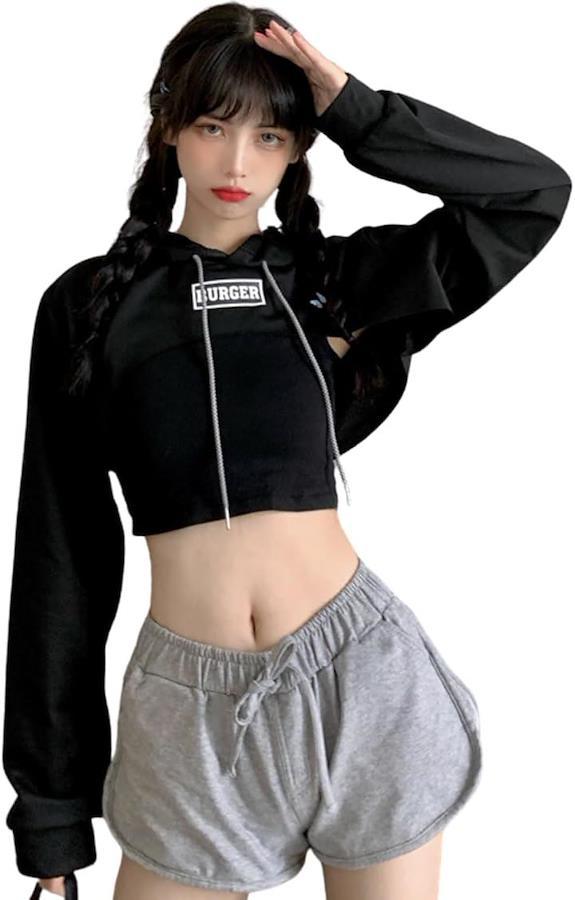 Cropped Top, Midriff-Baring, Women's, Korean K-Pop, Crop Hoodie, Tank Top, Mini T-Shirt, Innerwear, Dance, Sexy, Short