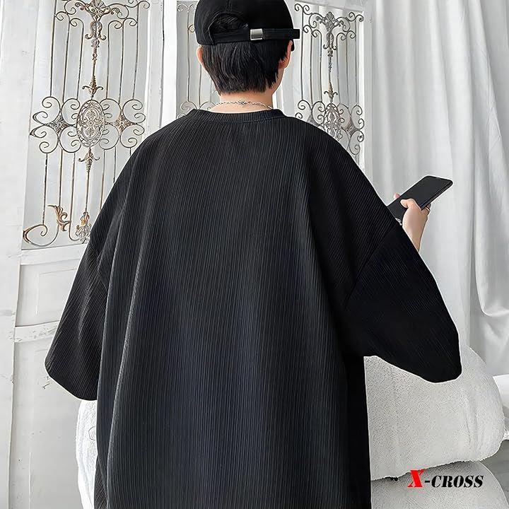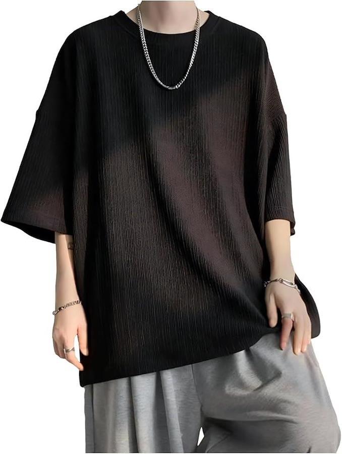 ややゆったりしたデザインで、窮屈感がなく、暑い夏でも快適に過ごせる半ぞでシャツ。
