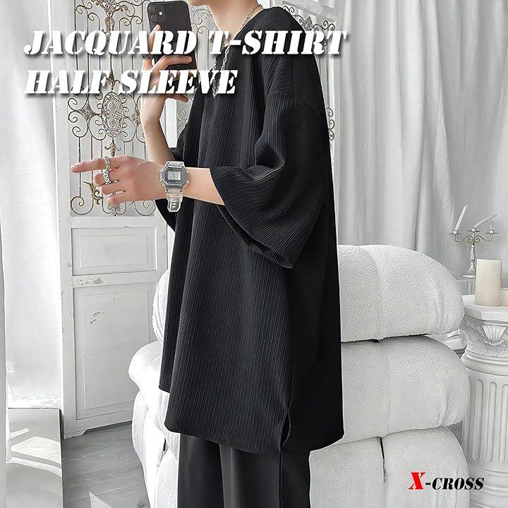 デザインはシンプルだけど、ファッション感をプラスしてくれるおしゃれなジャガードTシャツ。
