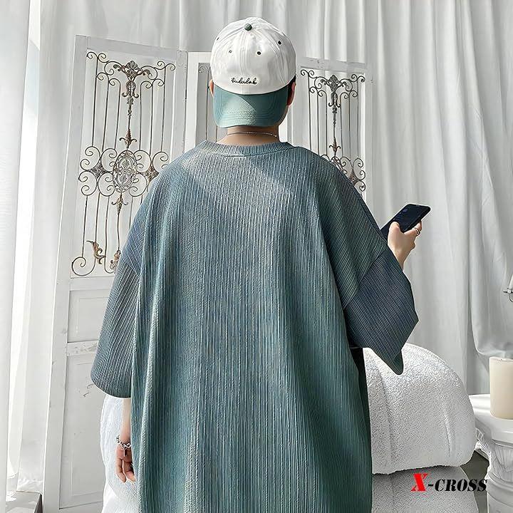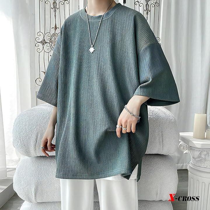 ややゆったりしたデザインで、窮屈感がなく、暑い夏でも快適に過ごせる半ぞでシャツ。