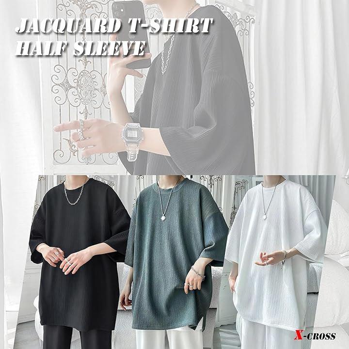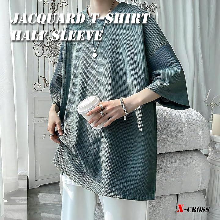 デザインはシンプルだけど、ファッション感をプラスしてくれるおしゃれなジャガードTシャツ。