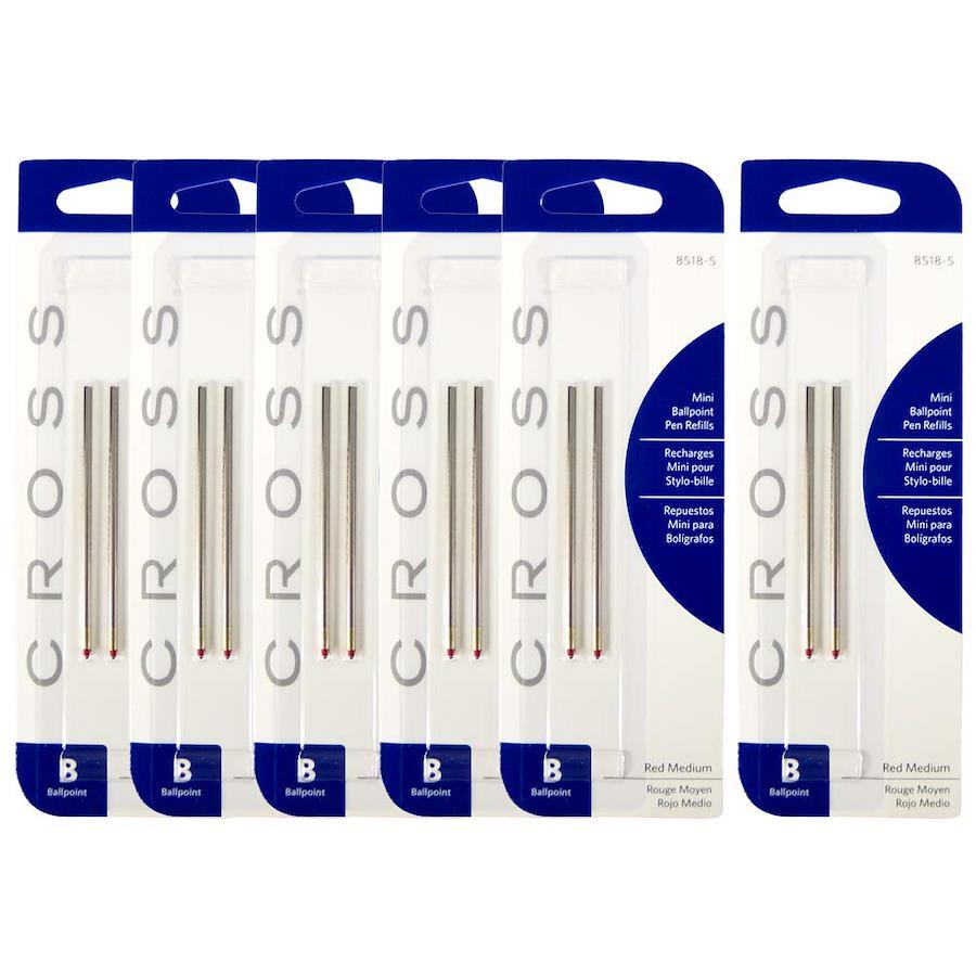 CROSS Ballpoint Pen Refills, Oil-Based, For Tex3, Medium, Red, 6 Pack (12 Pieces) 8518-5