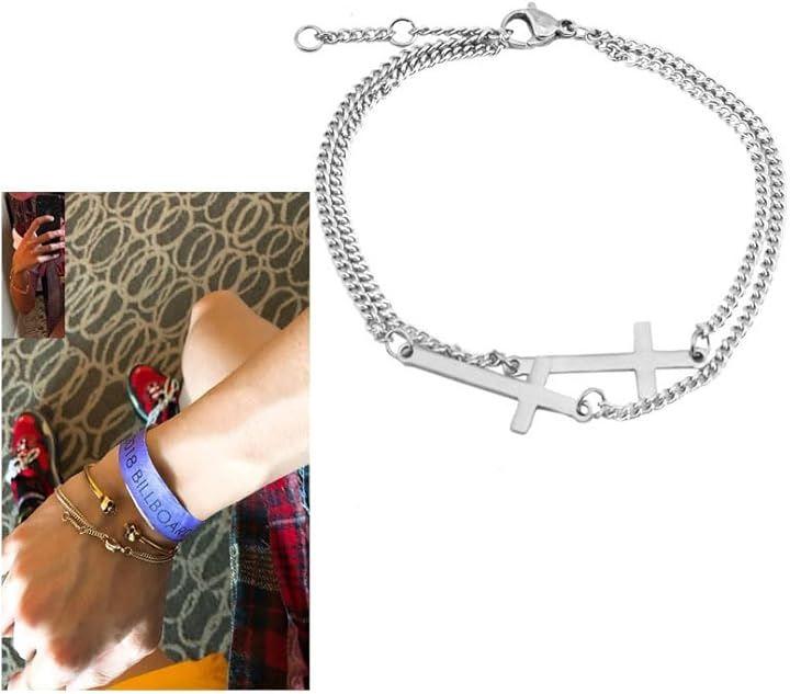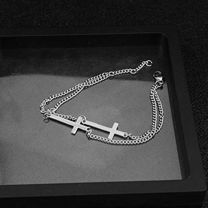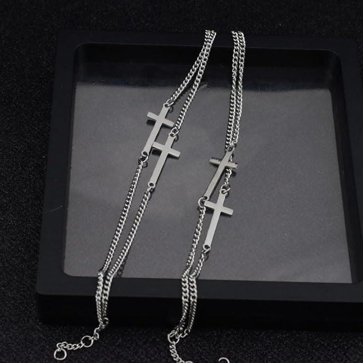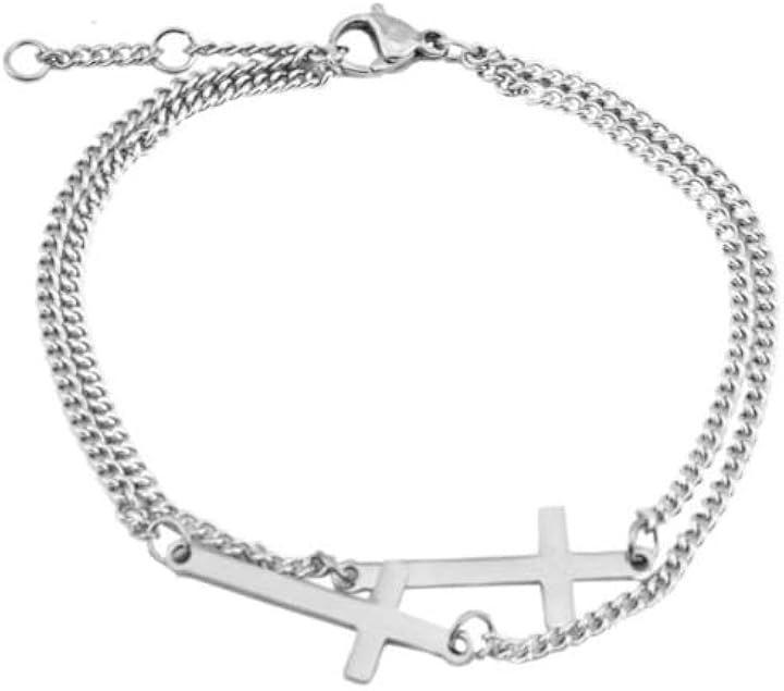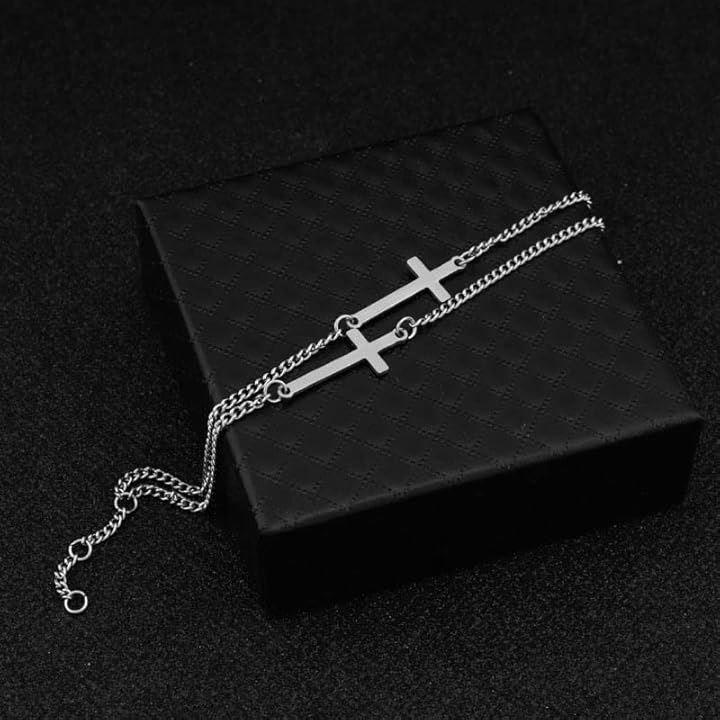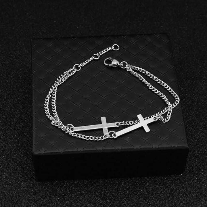 「デザイン」十字架 クロス ブレスレット / 定番のクロスが2つ付いた人気のブレスレット