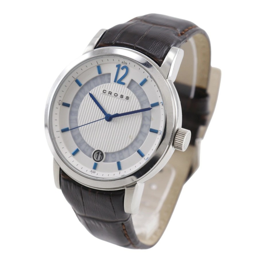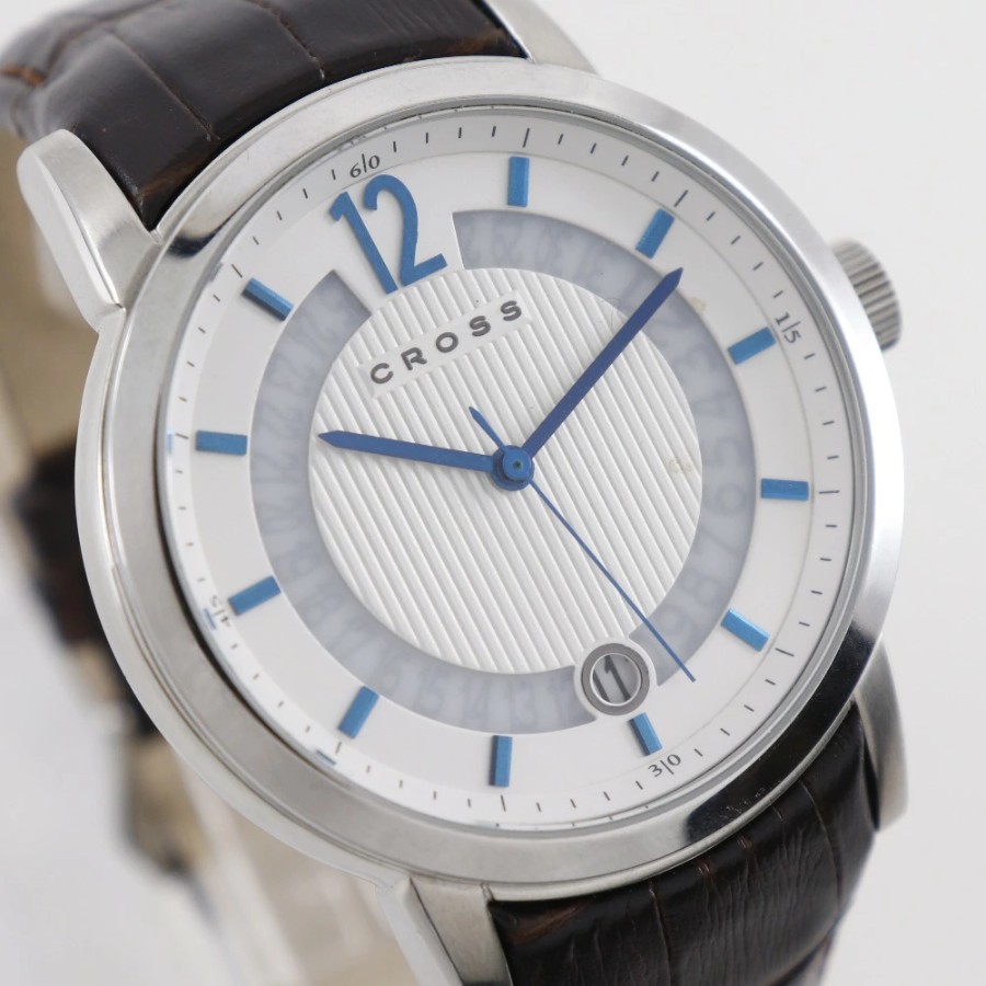 #CROSS#腕時計#カラー:ブラウン系#ランクB+#ステンレススチール#レザー#メンズ#ホワイト文字盤