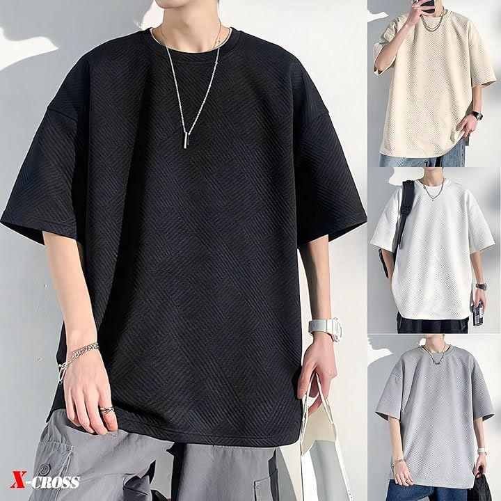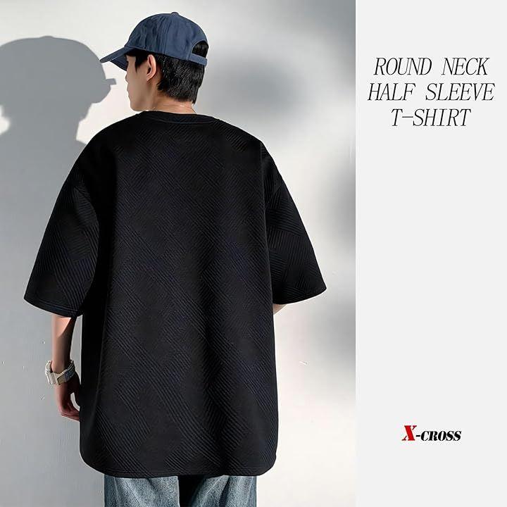 Cross loose t-shirt, short sleeve, men's, large, plain, opaque, oversized, 5/8 sleeve, polyester, round neck, stylish, casual, crew neck, big silhouette, Korean, cool design, top, street