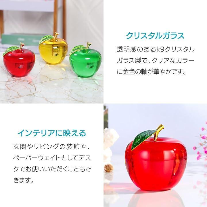 リンゴは若さや健康のシンボルでもあり、レッドは恋愛・夫婦円満・人間関係アップに、イエローは金運・生命力アップ、グリーンは仕事運アップ・癒しなど、運気を上げる風水アイテムとしても人気です。