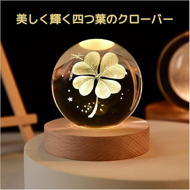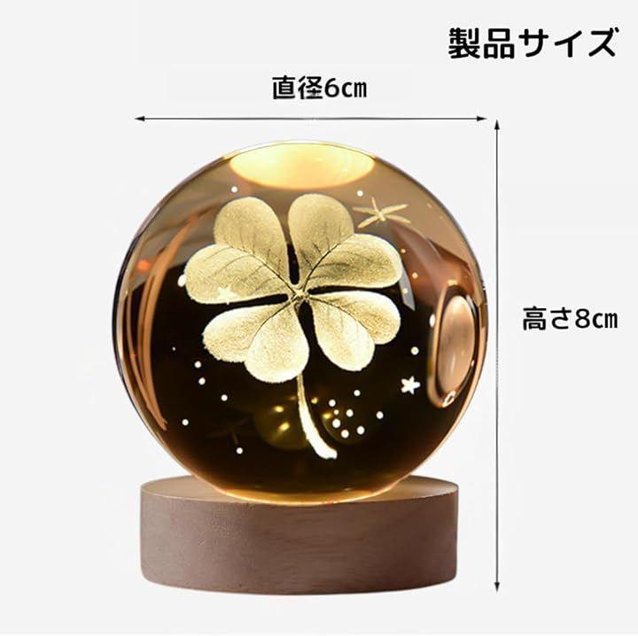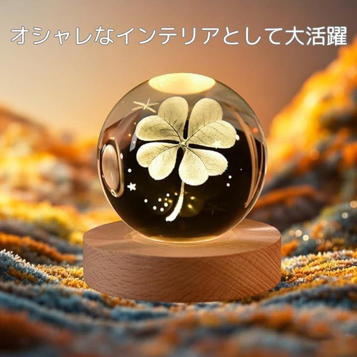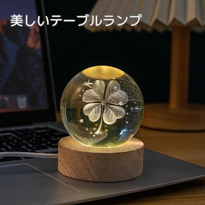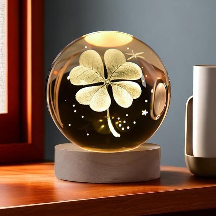 「暖かい光の美しいクリスタルボール」クリスタルボールに四つ葉のクローバーをあしらった美しいテーブルランプ。